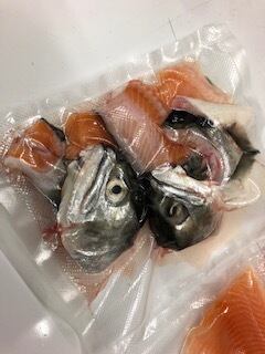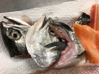 基本は写真にあるような3枚おろし、あら(頭2割、釜、あばら、背骨) 、身(皮引き、小骨処理)となります。