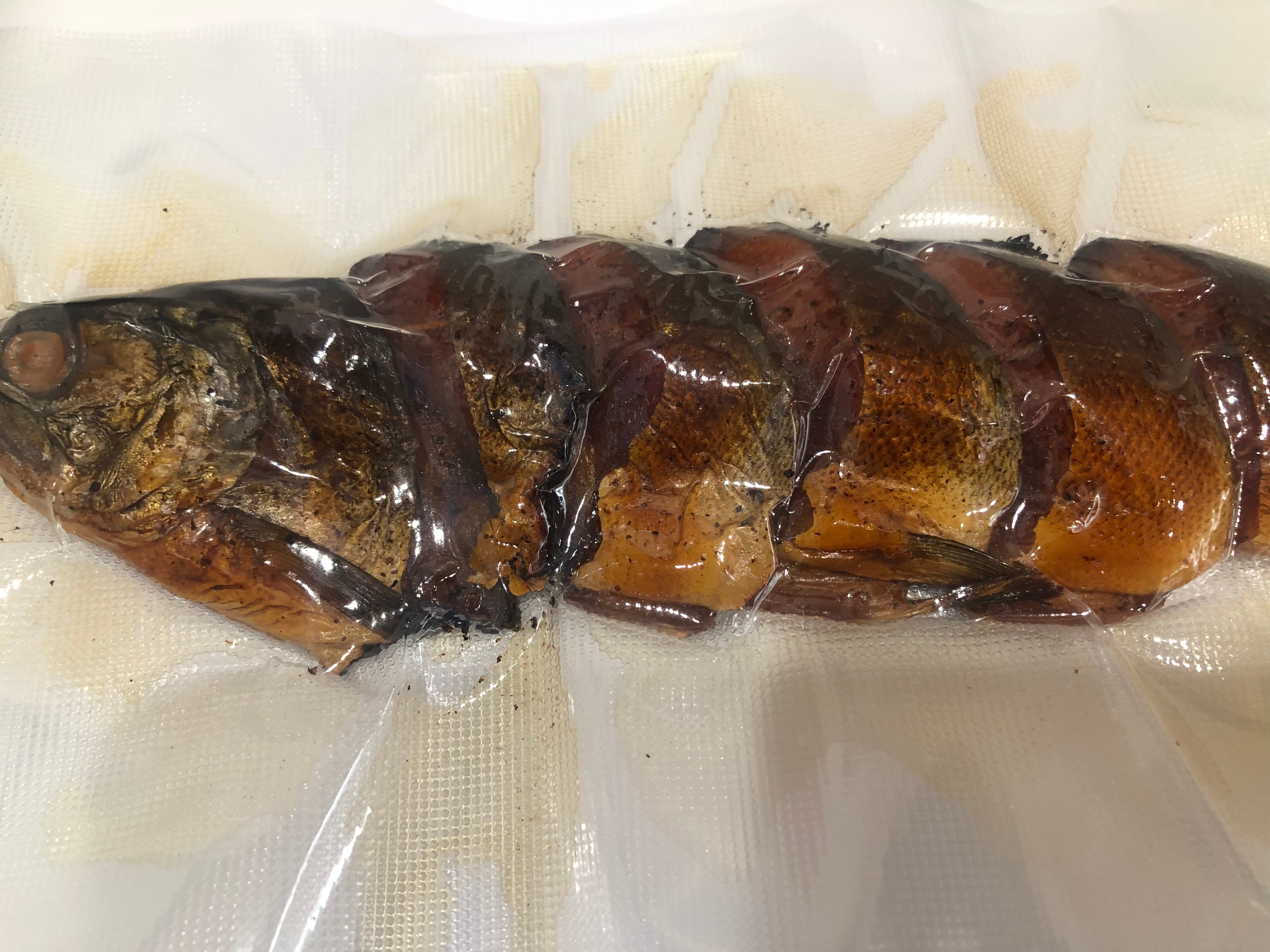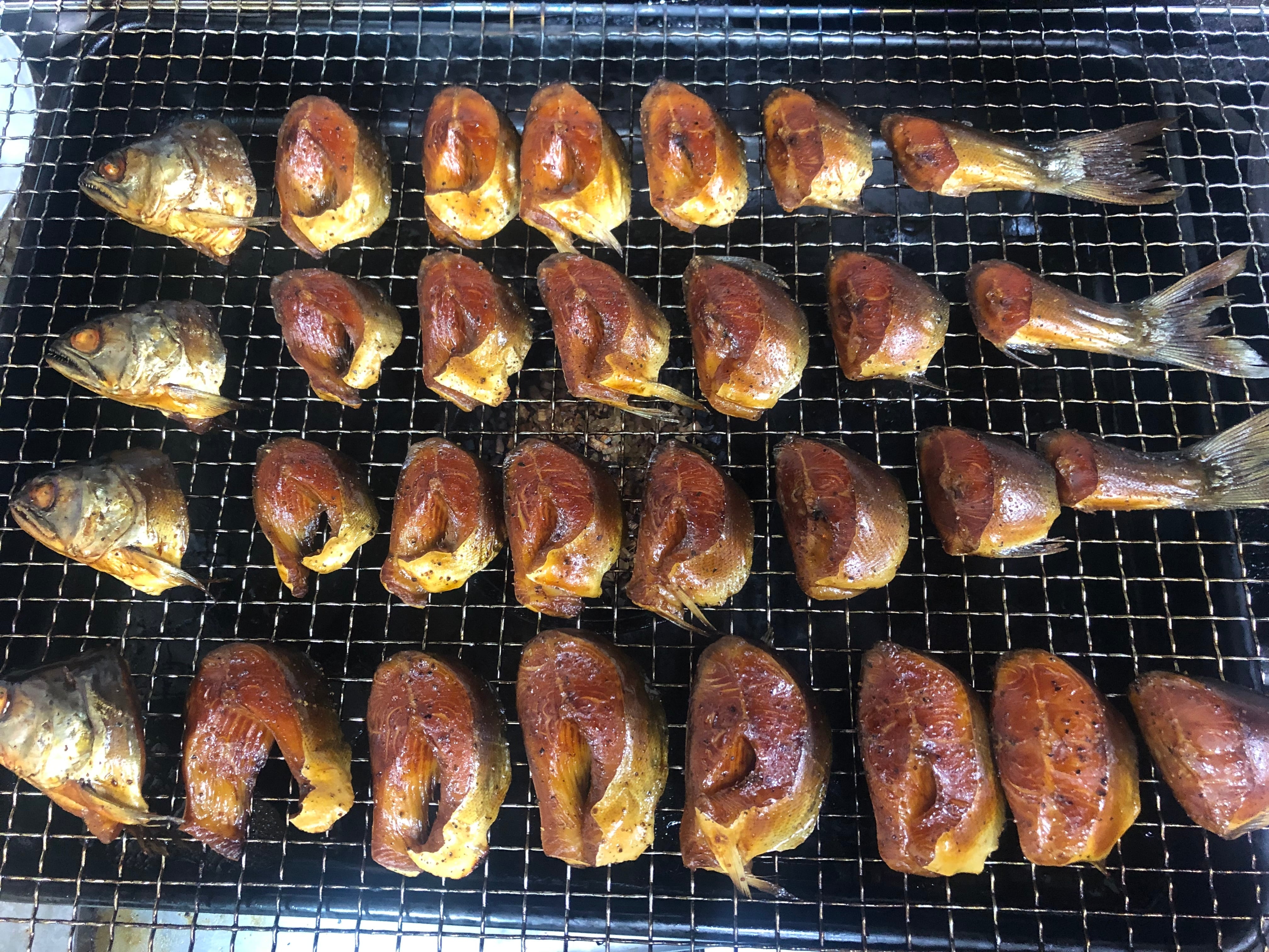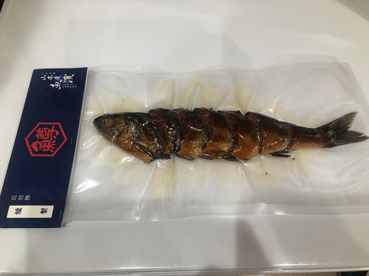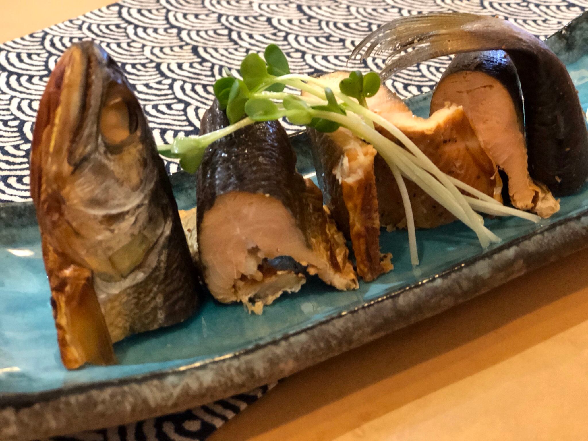漁師さん直入れの一本釣り天然琵琶鱒を食べやすくカットして桜のチップで燻製しました。